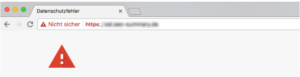 Benutzt du für deine Website ein SSL-Zertifikat? Wenn nicht, wird es Zeit. Bei den meisten Webhosting-Anbietern ist mindestens ein SSL-Zertifikat inklusive, das kannst du deiner Website zuweisen. Manchmal kann hier auch noch das Plugin Really Simple SSL hilfreich sein, um alle bisherigen Links von http auf https abzuändern. Teste anschließend alle Seiten deiner Website, ob sie in der Adressliste in Grün angezeigt werden. Andernfalls sieht das so aus: